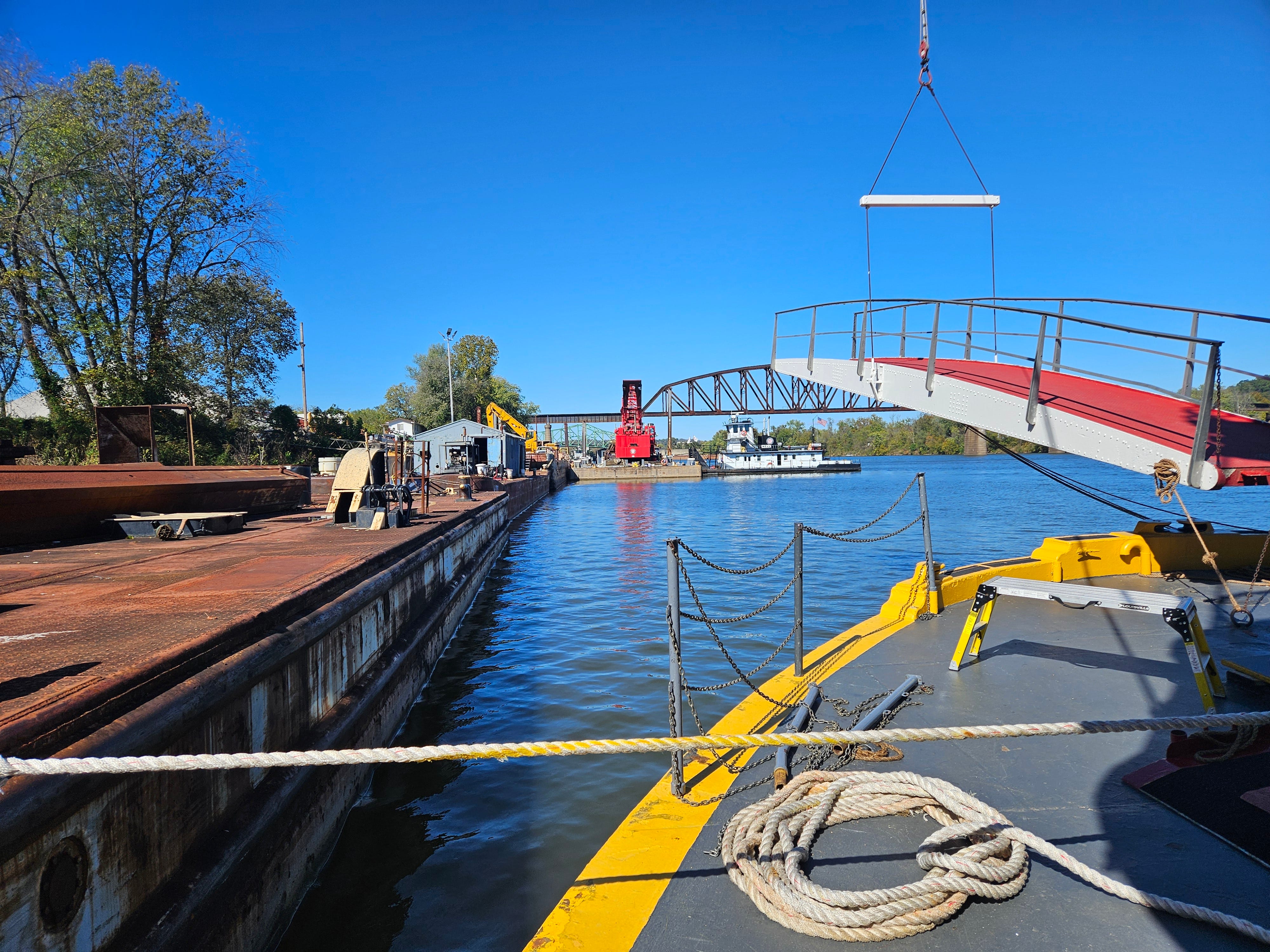 Although we started the winterizing process on Friday, today was a busy day taking things apart. There’s still plenty more to do. In order to get the Belle into the dry dock for the shipyard to begin the work that needs to be done by them, we had to get all the fuel off the the boat; this meant the yard using a barge and a tug to take over to a defueling barge to pump it out. When the Belle is ready to go home, they will put the fuel back on.