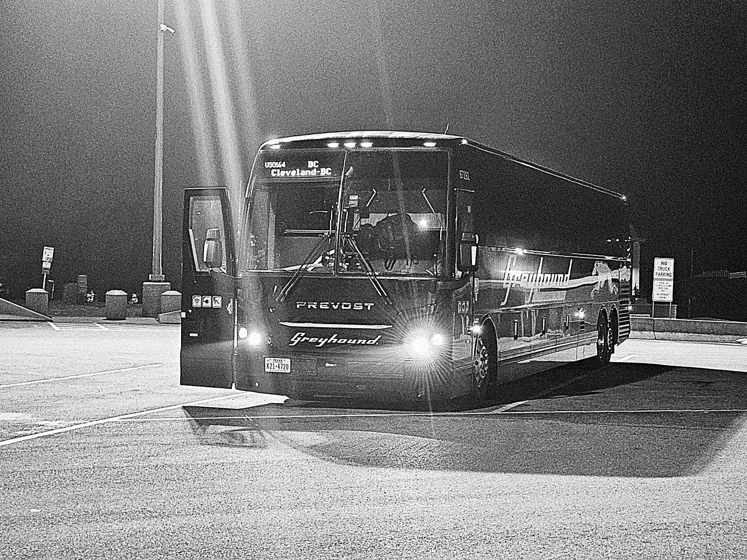 I’d made the motel reservation and prepaid, though. I thought I might have a decent shot at talking myself into an early check in; I was even willing to pay an additional day. 30 plus hours on the bus, and while I got some sleep, it wasn’t deep sleep, especially on the last leg out of Pittsburgh. I was tired. And a bed was a good gamble.